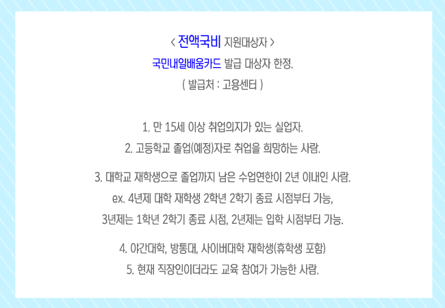 | 지원자격 | 실업자, 근로자, 대학생 |