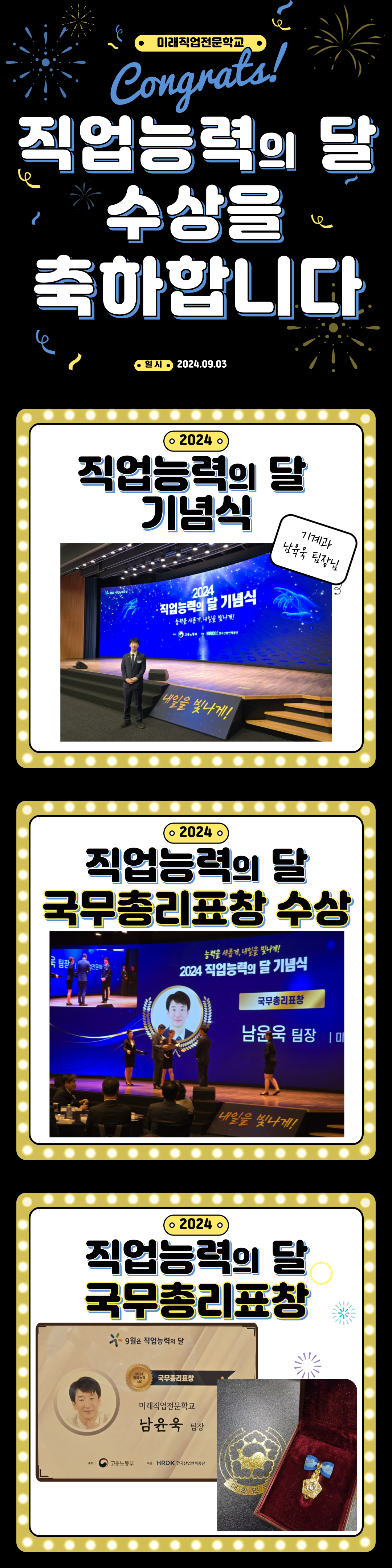 2024 직업의 달 국무총리표창 수상-기계과 남윤욱팀장님  |